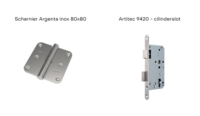 Scharnieren: Inox 80/80 (Argenta), gefreesd en gemonteerd